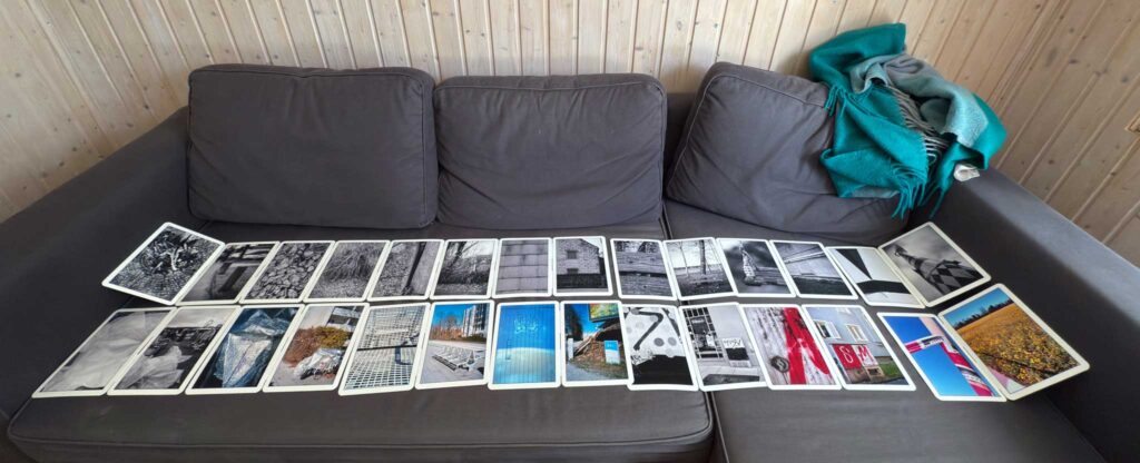 In der Serie finden sich auch Paare zu Themen, die ich eher kritisch sehe. Dazu gehören die vielerorts noch vorhandenen Steingärten oder alte Asbestplatten – Relikte einer Zeit, in der Zweckmäßigkeit vor Umweltbewusstsein stand. Ebenso tauchen Motive auf, die Spuren von Vandalismus zeigen: Stromkästen, besprüht mit Vereinsfarben und -kürzeln, allgegenwärtig im öffentlichen Raum. Daneben stehen Beobachtungen, die mich eher staunen lassen – oder Dinge, die trotz sichtbarer Defizite doch ihren Nutzen haben oder sogar schön sind.